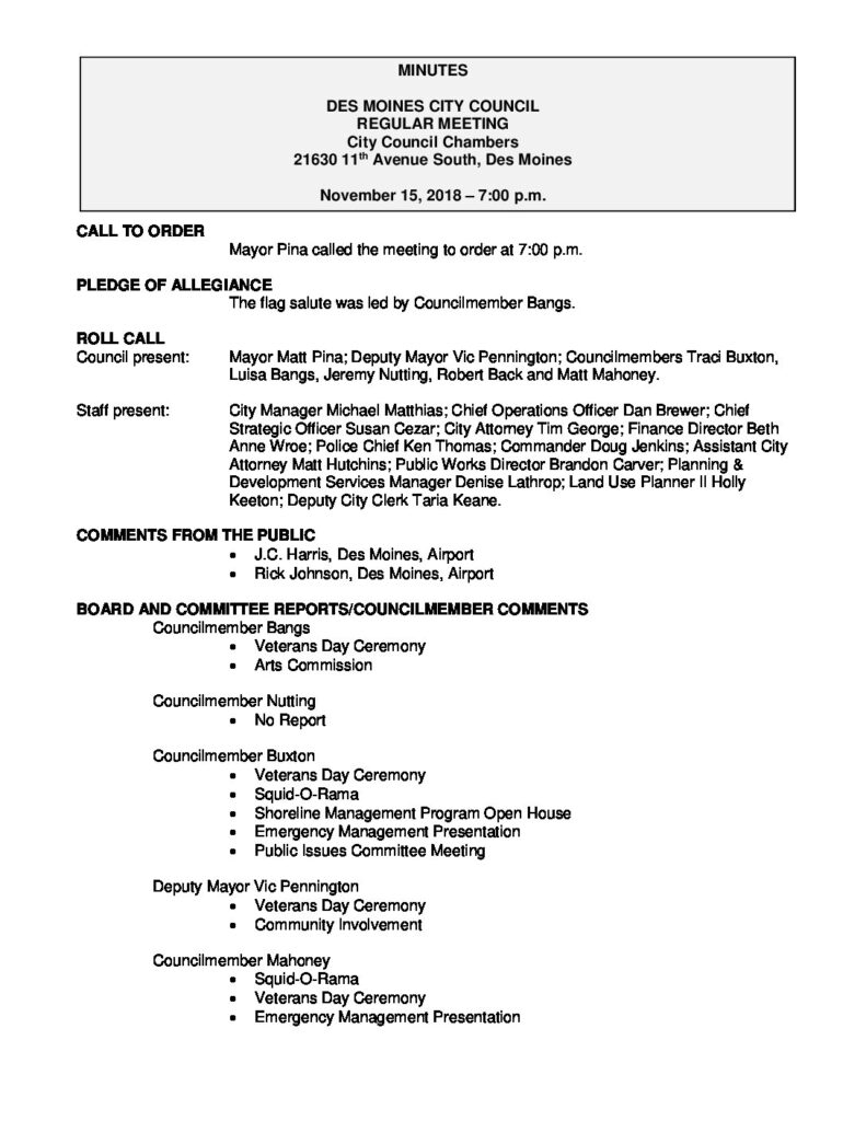 Published inNovember 15, 2018 City Council Minutes