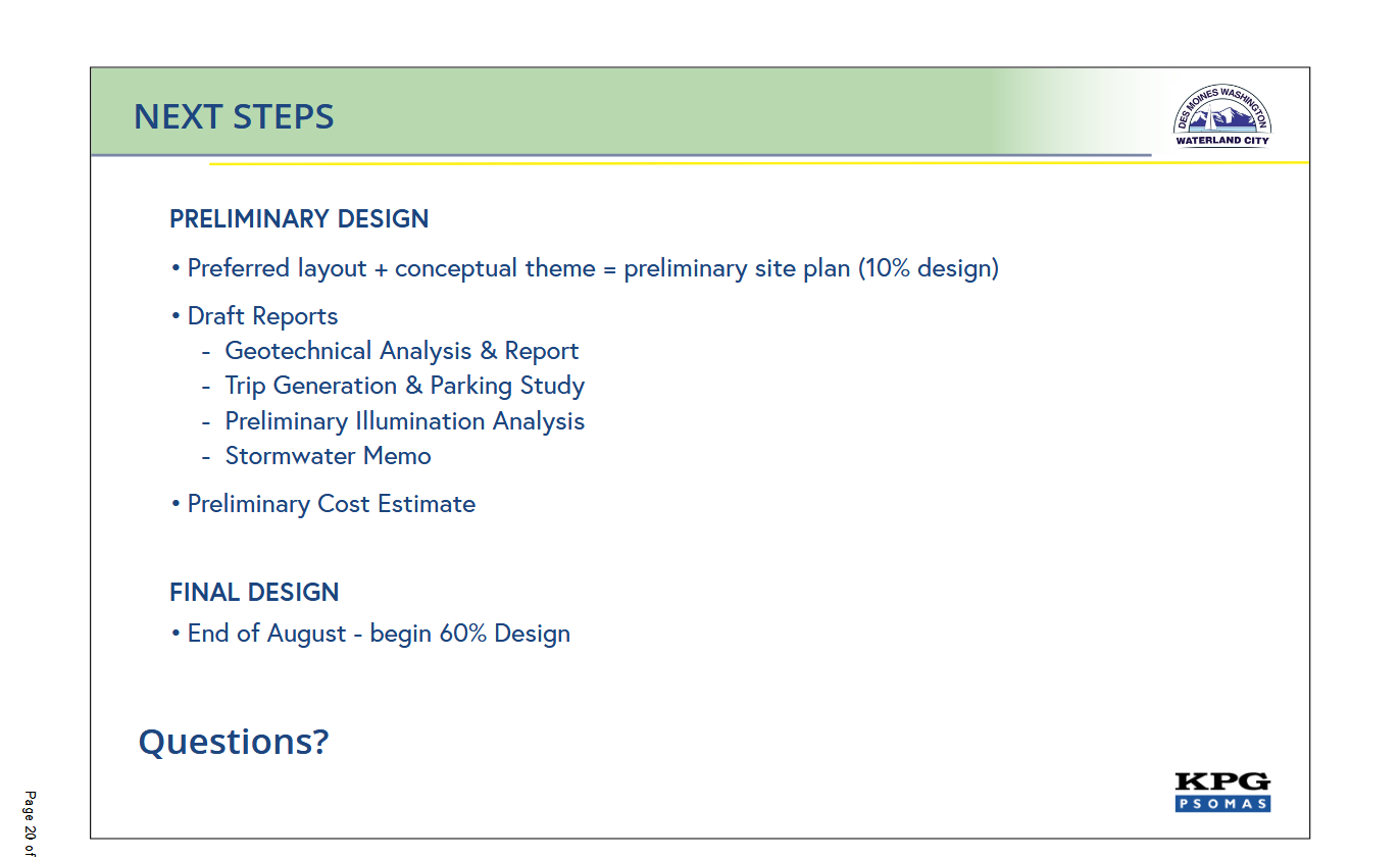 The Mayor’s approach to the Marina Steps discussion was terrible parliamentary procedure. But it was a very ‘Des Moines’ move. Passive aggressive and practical. 😀 She was absolutely correct: there were no minds to be changed. As she said, she wanted to get something done before leaving office. Mission accomplished.