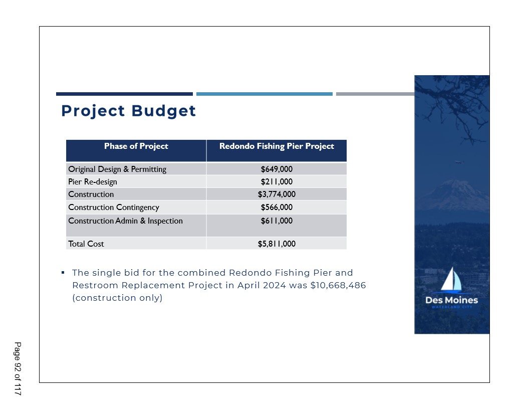 - DES MOINES MARINA STEPS FUNDING AND BIDDING UPDATE