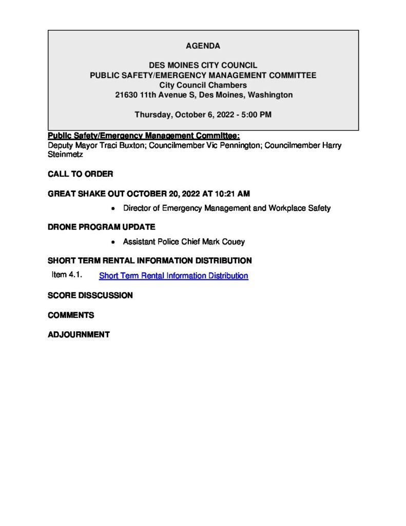 Public Safety_Emergency Management Committee – 06 Oct 2022 – Agenda – Pdf
