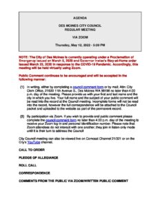• E-mail: All e-mails sent to citycouncil@desmoineswa.gov are considered public comment. They are instantly available to all members of the City Council and the City Clerk who includes them into the record of public comments at the next meeting.
