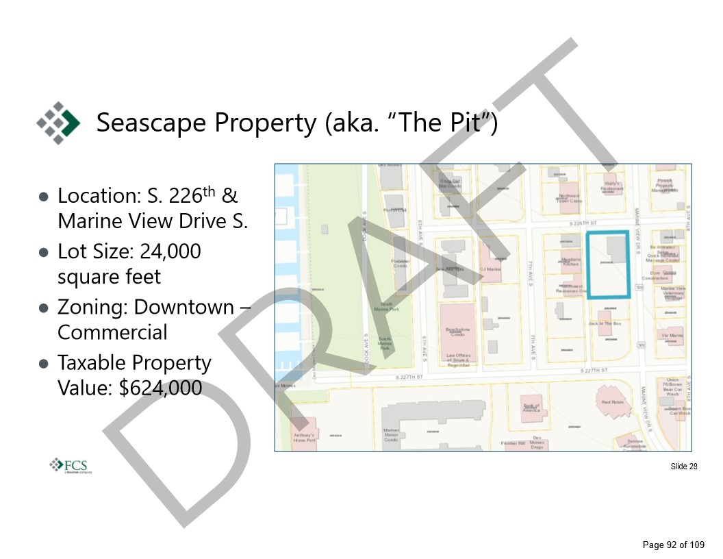 As just one example: if you recall, the original ‘plan’ for the Marina, going back to 2016, was a for-profit development. And after spending hundreds of thousands of dollars and doing an extensive RFP, not a single legit proposal came forward. We ended up ‘pivoting’ to what will be a $13,000,000 park (ie. ongoing borrowing cost because no one wanted to build on what we were told was the most desirable spot in town. We re-labeled it as ‘placemaking’. Perhaps. But if you can’t see how that failure connects to Sea-Tac Airport, I have some property in the Everglades I’d like to talk with you about. 🙂
