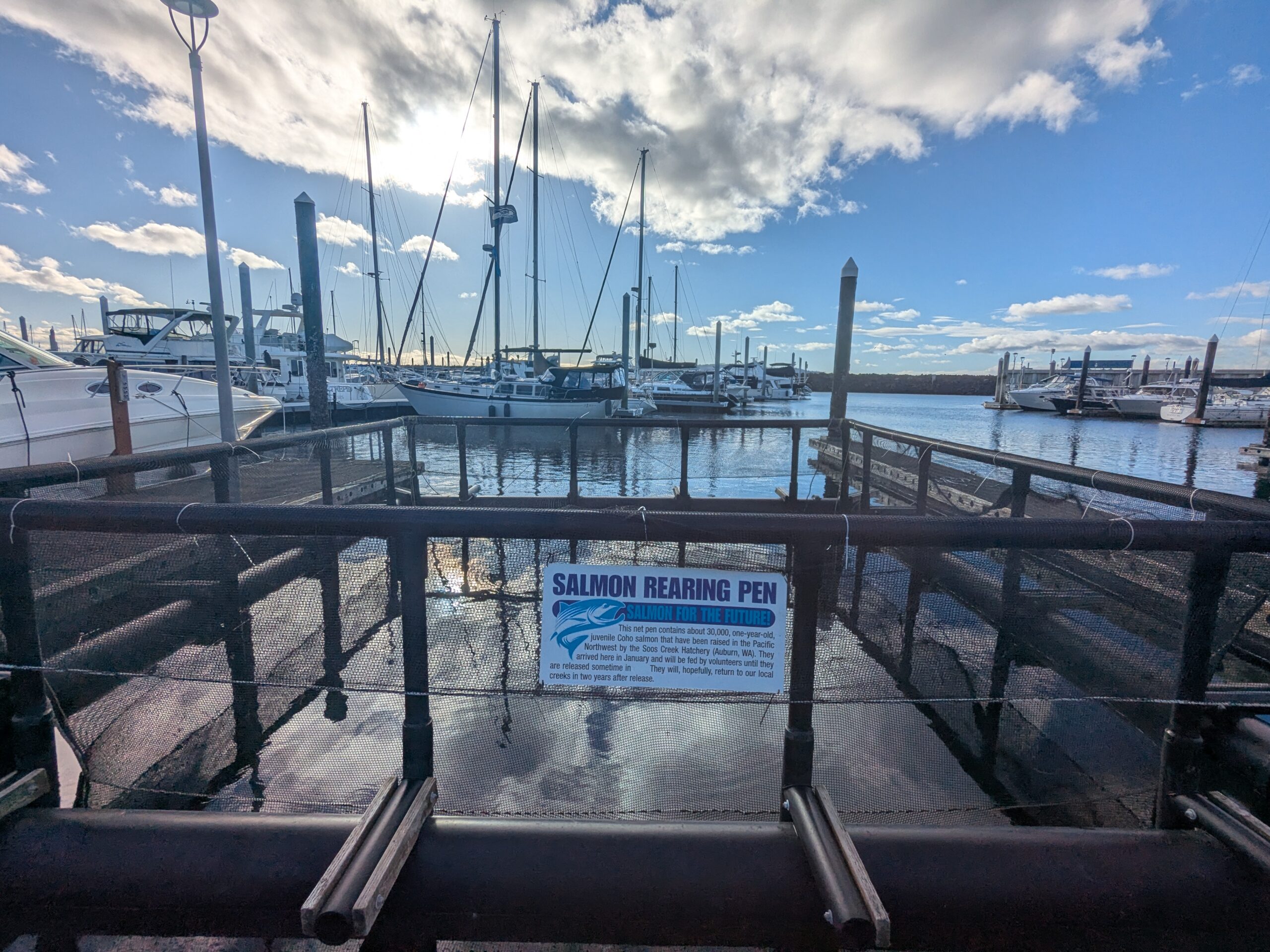 The salmon fry at the Marina are doing well, growing fast, and their daily feeding has increased from five to six pounds.