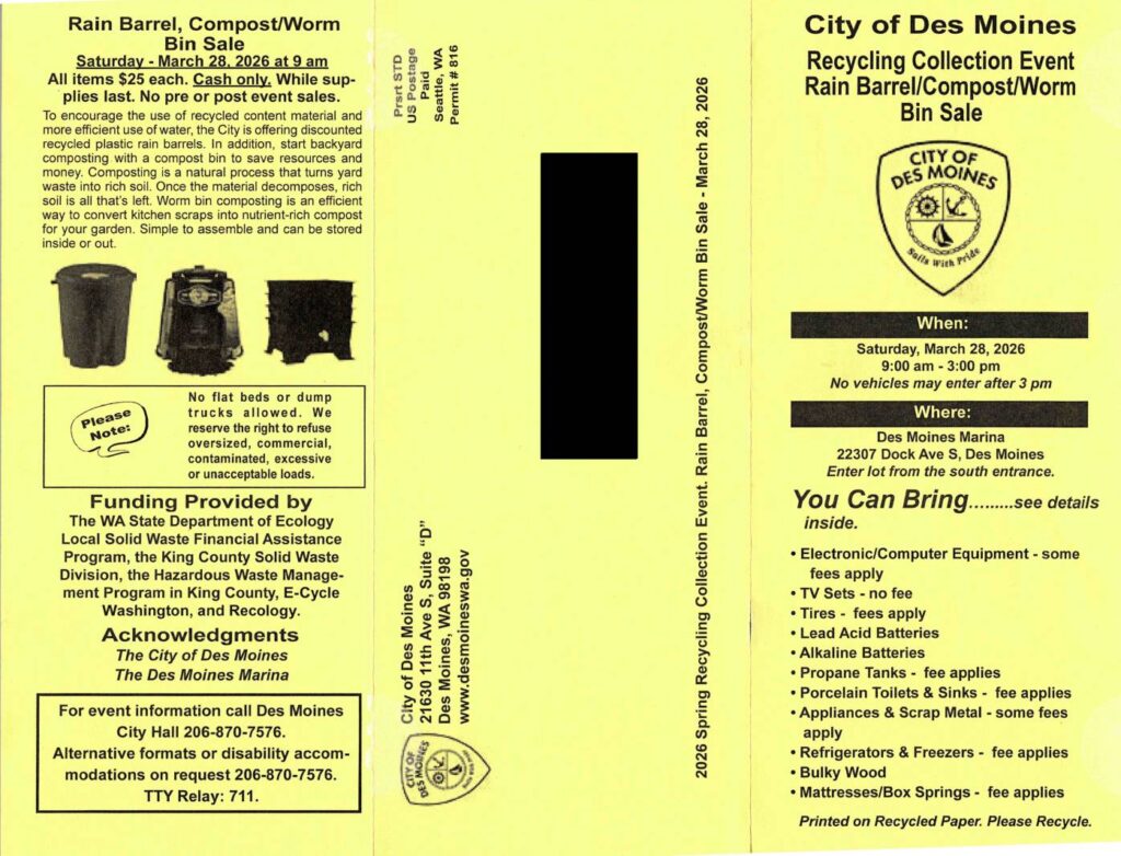 9:00am – 3:00pm Spring Recycling Event at the Marina South Parking Lot!